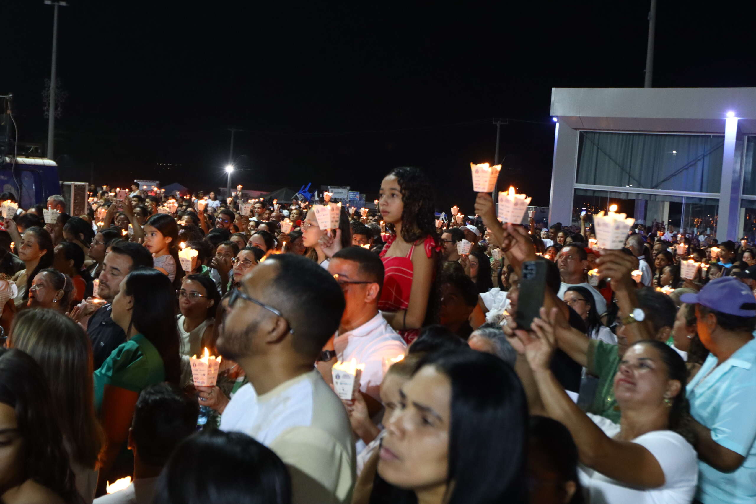 Com 54 metros de altura, a maior estátua dedicada a Nossa Senhora de Fátima no mundo foi entregue aos fiéis nesta quinta-feira (13), no Crato, região do Cariri. O governador Elmano de Freitas participou da cerimônia ao lado do ministro da Educação e ex-governador do Ceará, Camilo Santana; do secretário-chefe da Casa Civil, Chagas Vieira; do prefeito do Crato, André Barreto; e de outras autoridades.